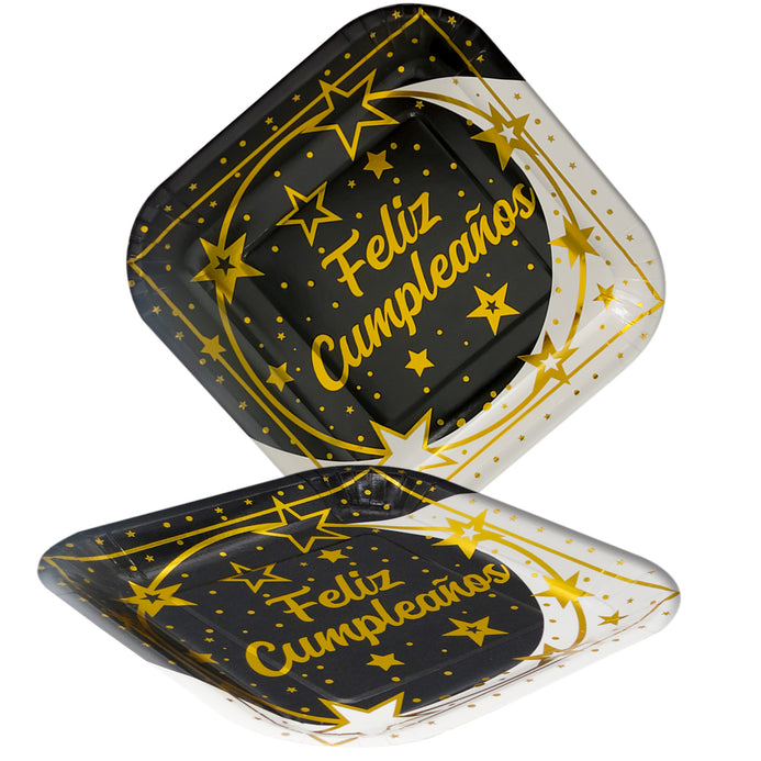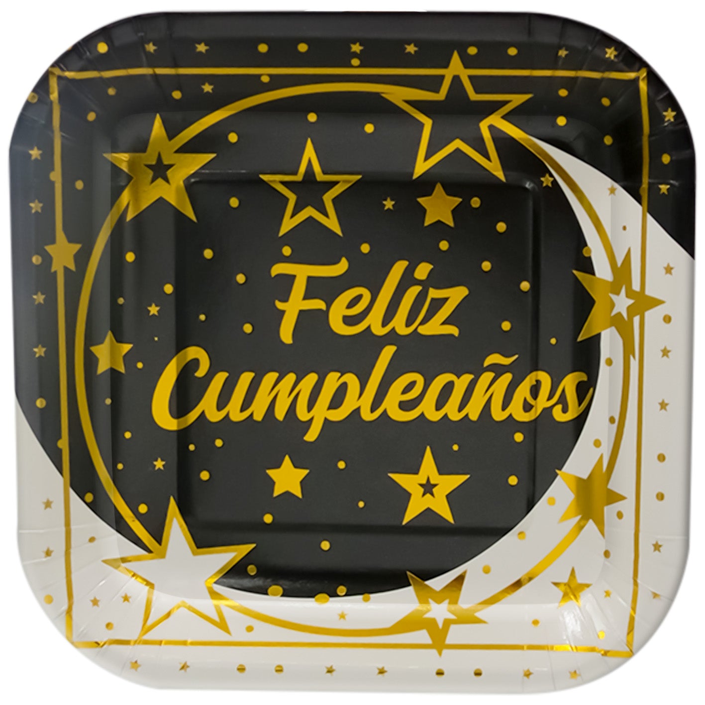Plato Cartón Metalizado Cuadrado Feliz Cumpleaños 6"