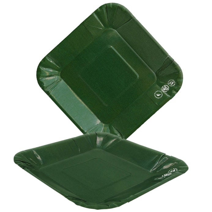 Plato Cartón Cuadrado 6" 8" Verde x12