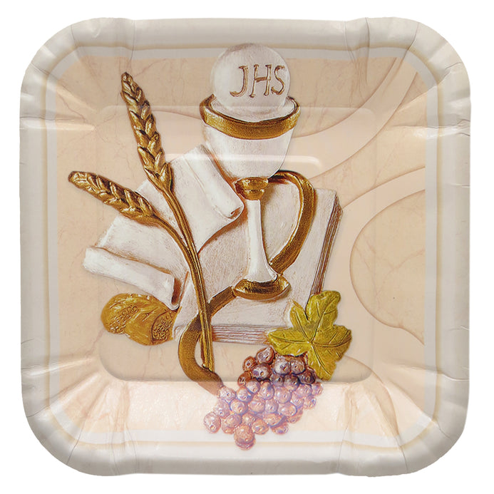 Plato Cartón Cuadrado Mi Primera Comunión 6" 8" x12