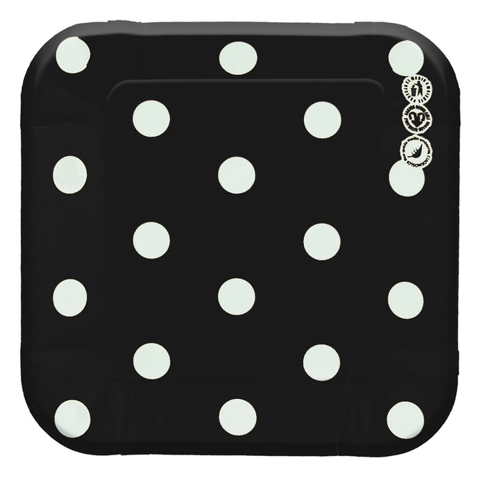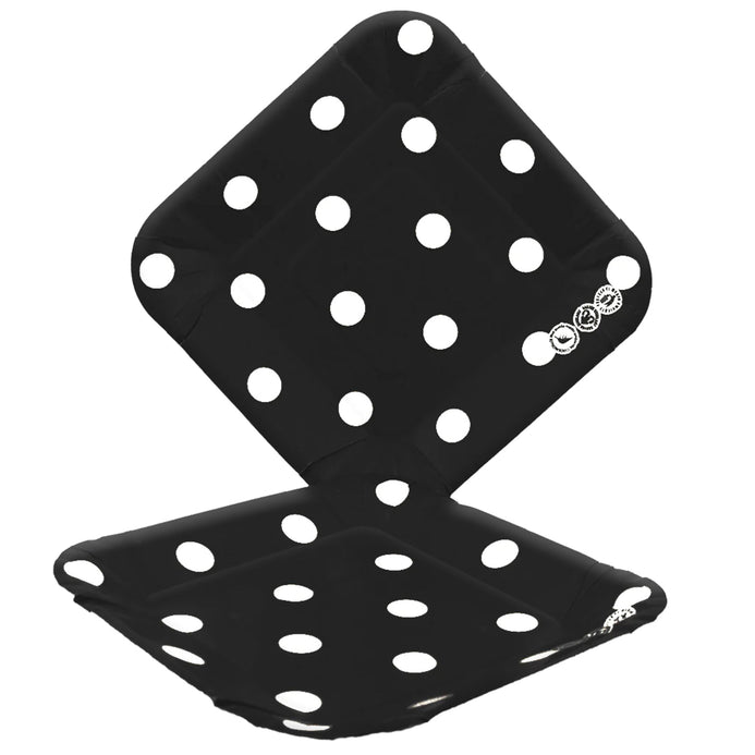 Plato Cartón Cuadrado Puntos 6" 8" Negro x12