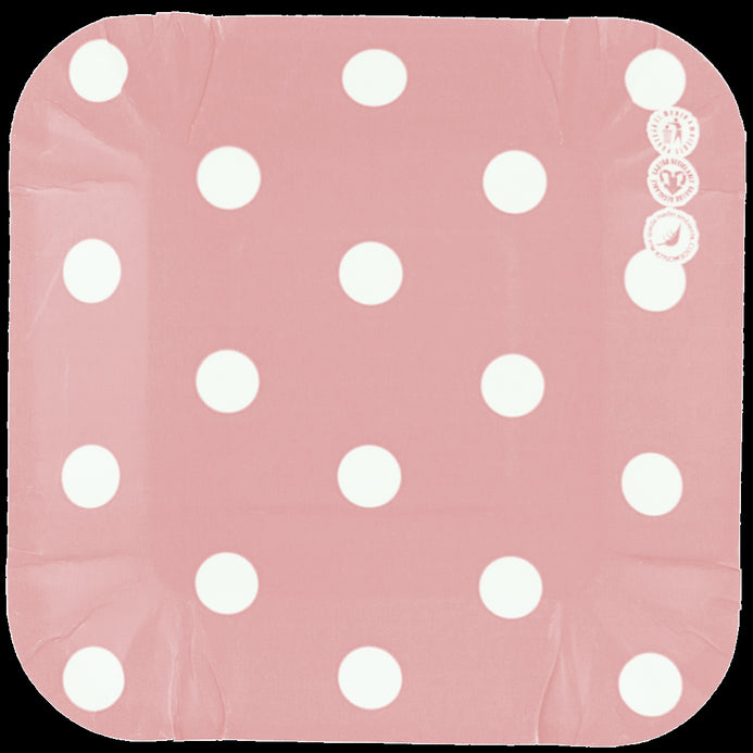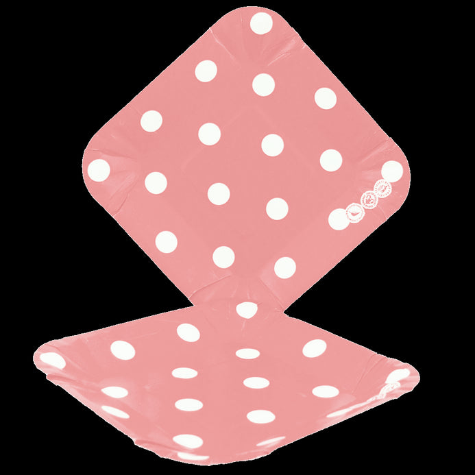 Plato Cartón Cuadrado Puntos 6" 8" Rosado x12