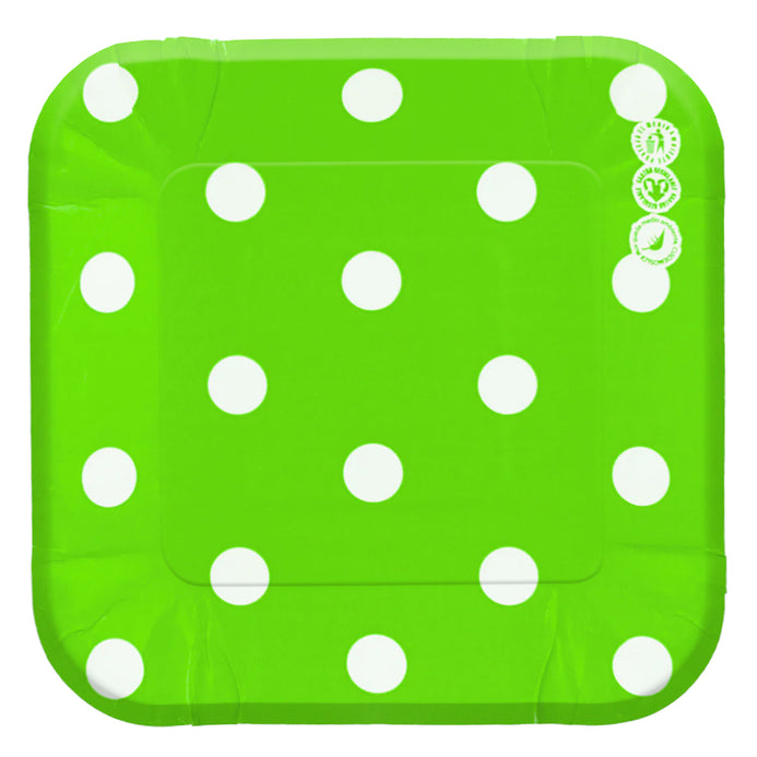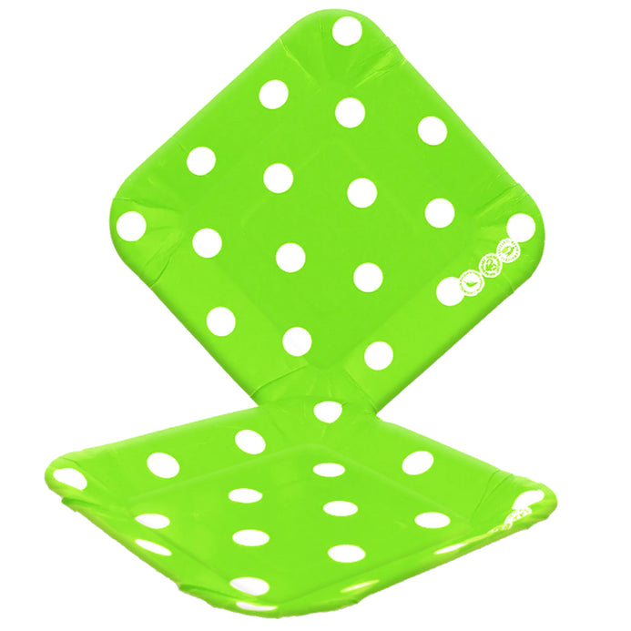 Plato Cartón Cuadrado Puntos 6" 8" Verde Limón x12