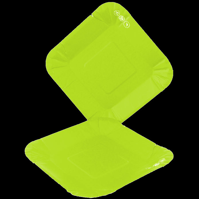 Plato Cartón Cuadrado Neón 6" 8" Verde x12