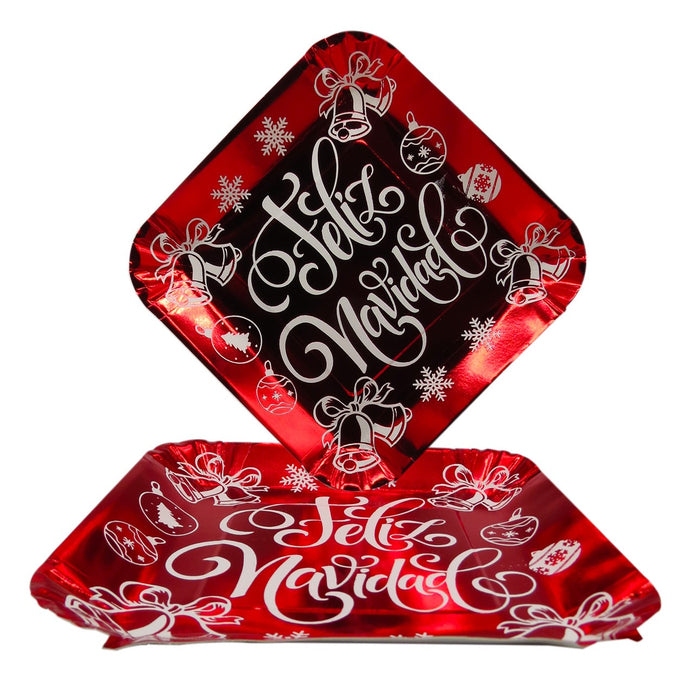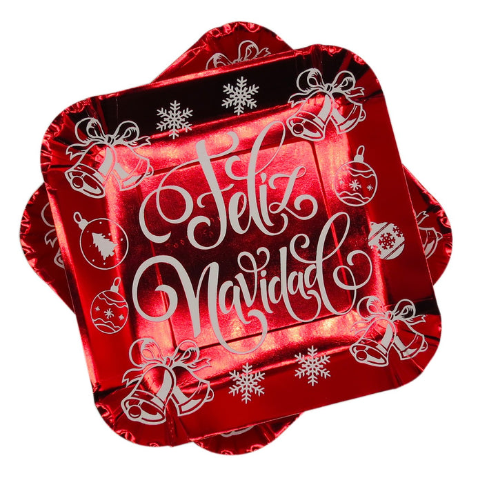 Plato cartón Metalizado Cuadrado Feliz Navidad 8" x12