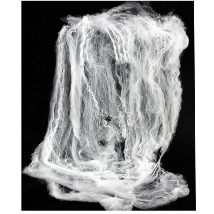 Un producto hecho de algodón artificial, anudado a mano y flexible para que se pueda tirar de cualquier forma desea, cuanto más estire la telaraña, más realista se verá. Imita la sensación del algodón de araña real, se puede rasgar suavemente y se puede unir a cualquier objeto.