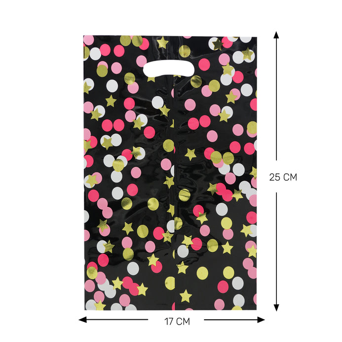 Tamaño: 17 cm de ancho x 25 cm de alto, adecuado para entregar recuerdos de fiesta como dulces, chocolates, galletas, juguetes pequeños.