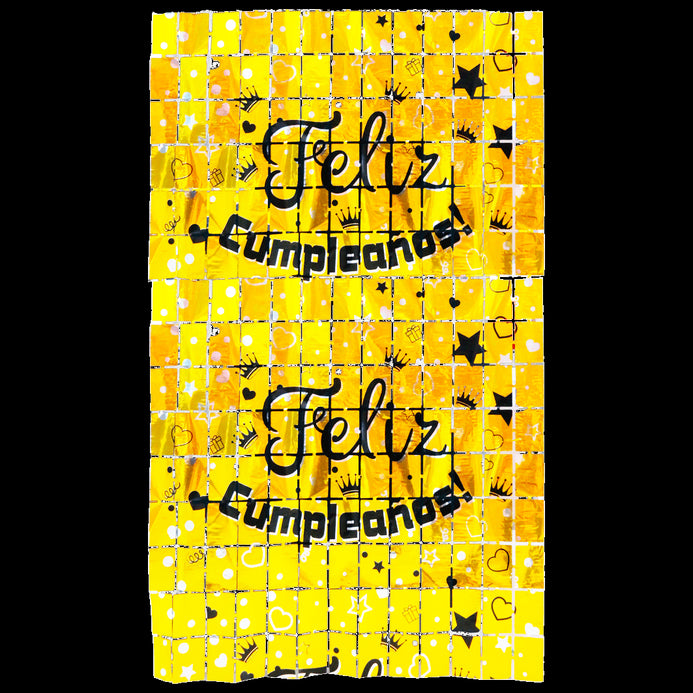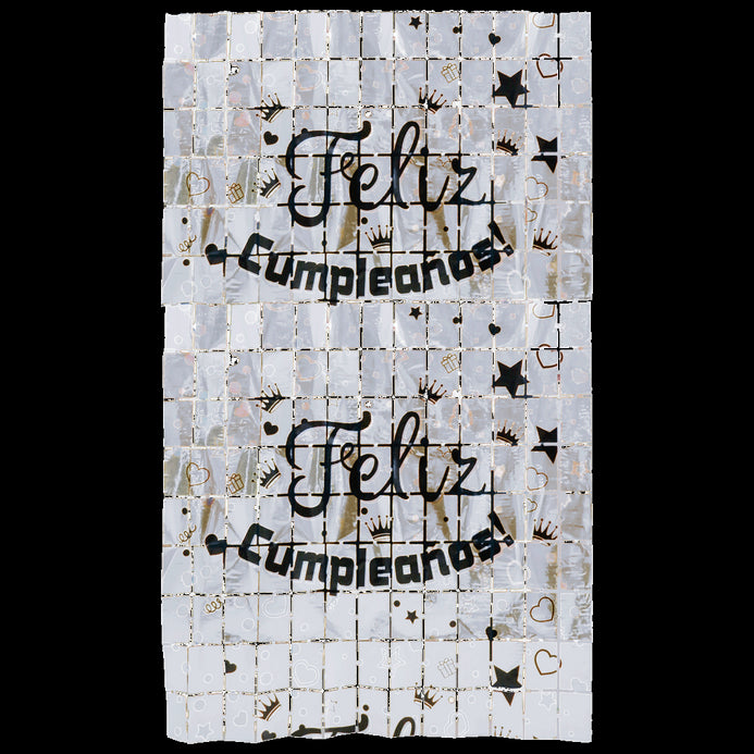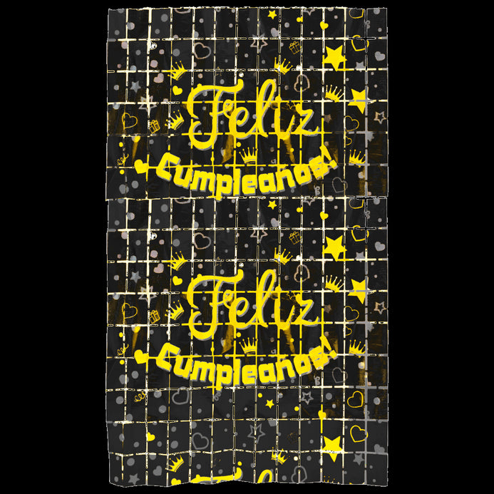 Cortina Cuadros Feliz Cumpleaños - Dorado, Negro y Plata