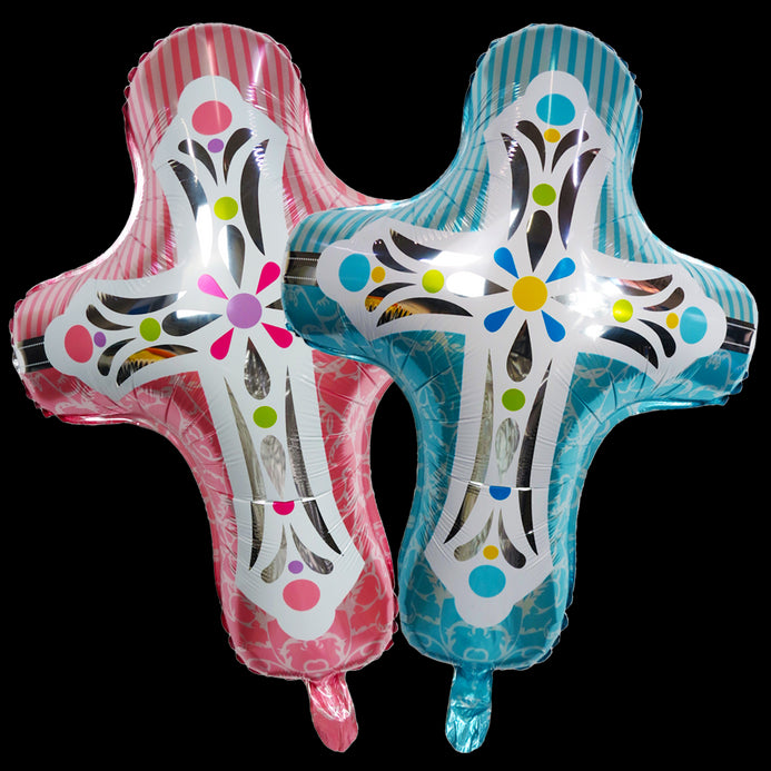 Globos Metalizados Cruz Rosa y Azul 74x51 cm