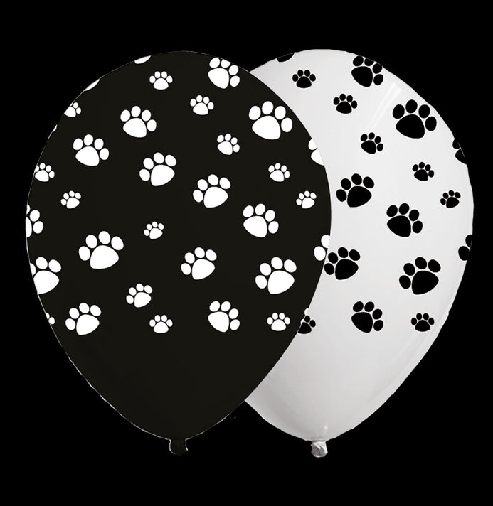 Globos Látex Biodegradables Corrienres 360° Huellas Blanco y Negro