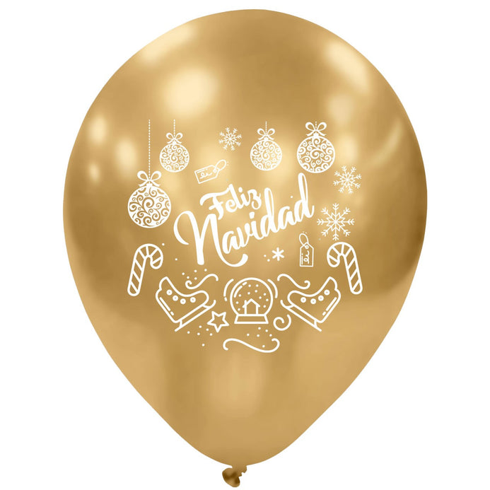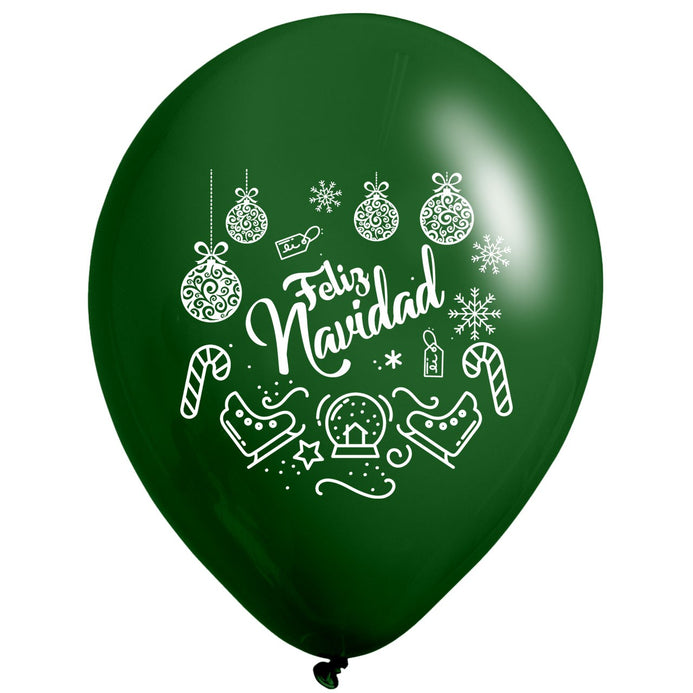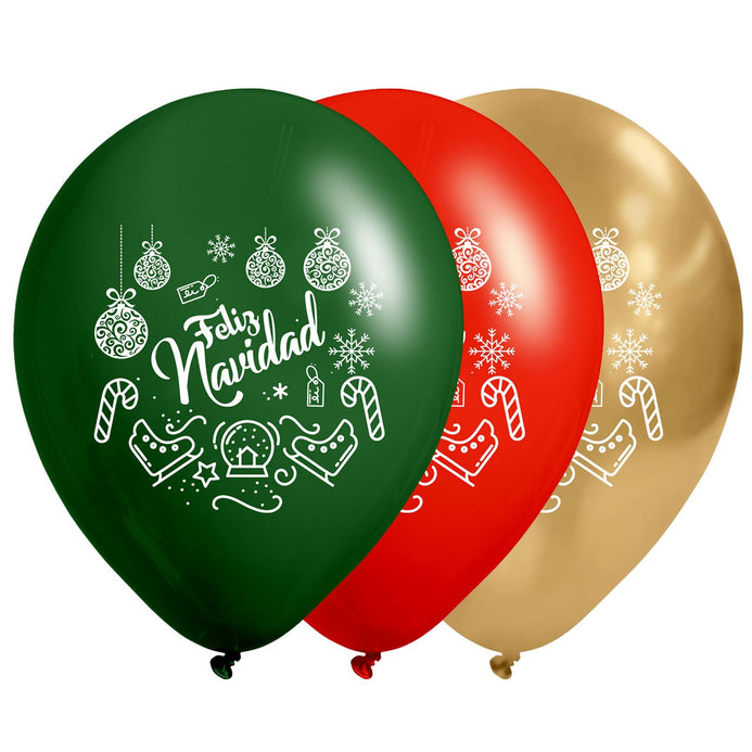 Globos Látex Biodegradables Feliz Navidad Dorado-Verde y Rojo