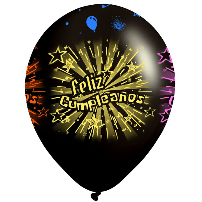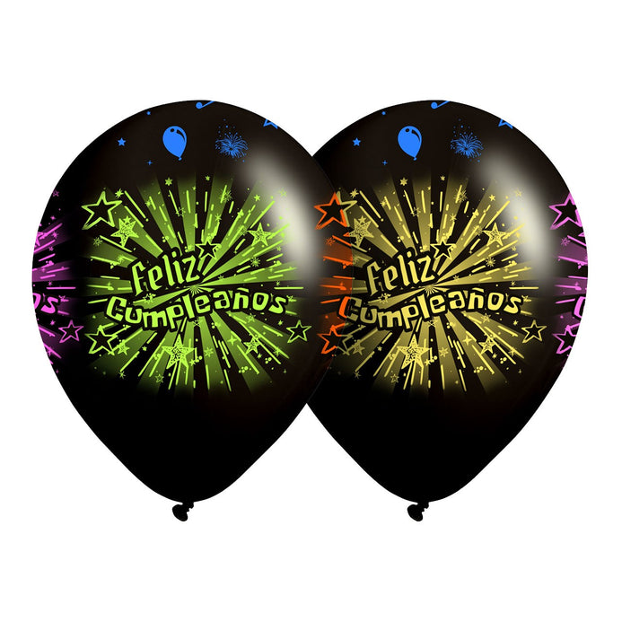 Globos Látex Biodegradables Corrientes 360° Feliz Cumpleaños Tinta Neón