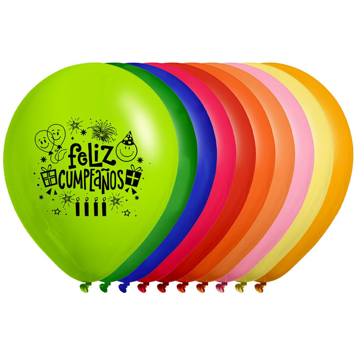Globos Látex Biodegradables corrientes Feliz Cumpleaños Caras Felices Surtidos