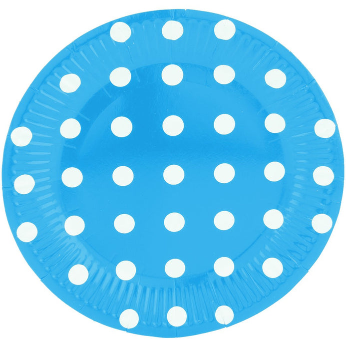 Plato Cartón Redondo Puntos Azul Claro 9" x12