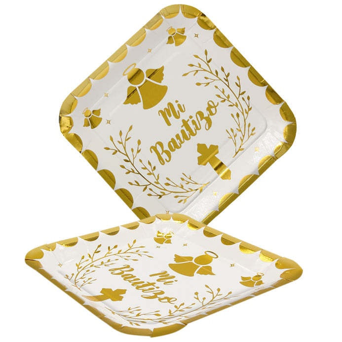 Plato Cartón Cuadrado Metalizado Mi Bautizo 6" x12