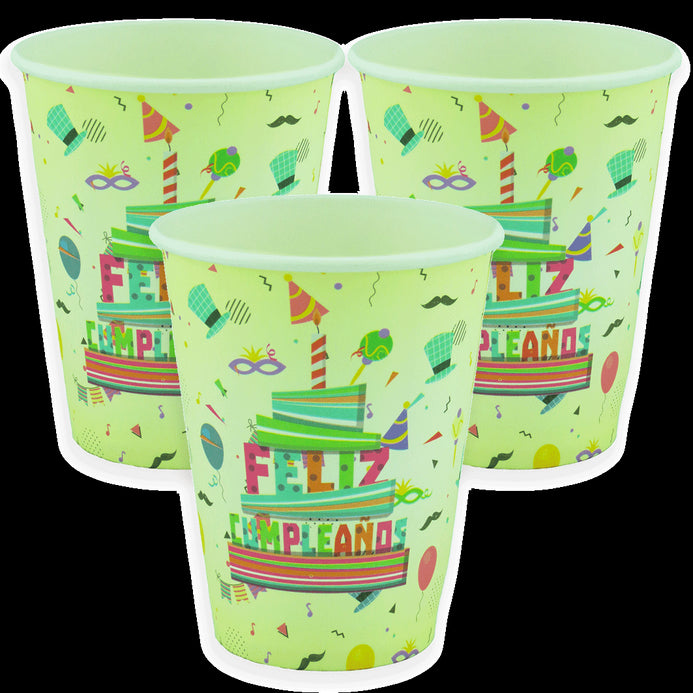 Vaso Carton Feliz Cumpleaños 9 Onzas Amarillo x12