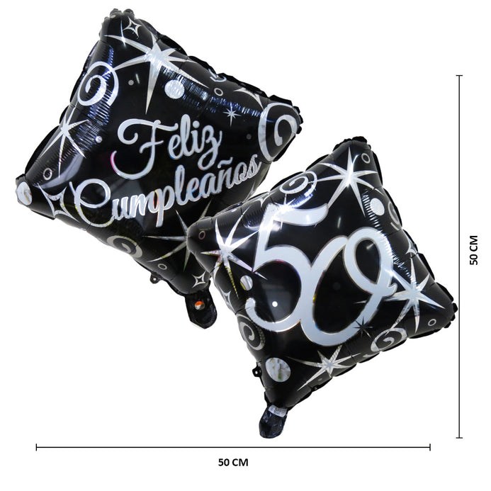 Globos Metalizados Feliz Cumpleaños 50 años 20" Cuadrados