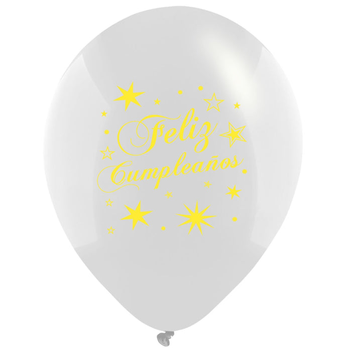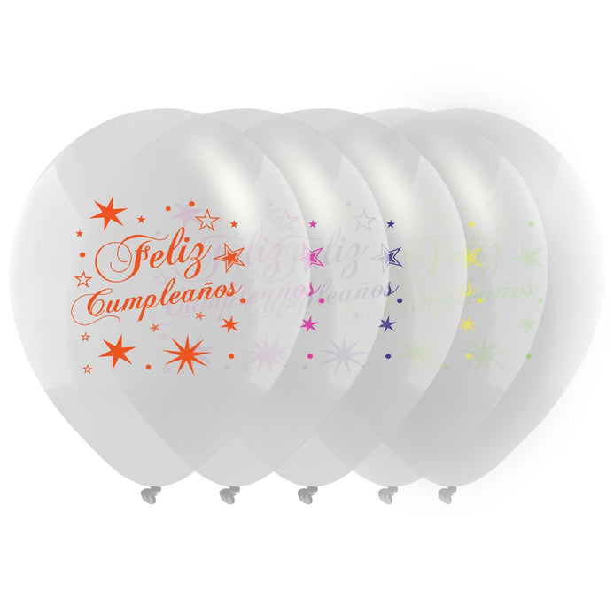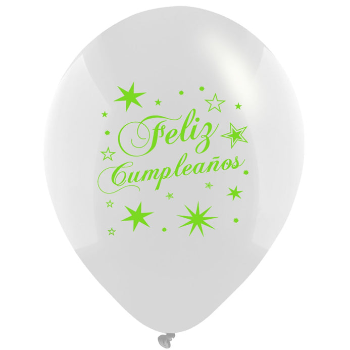 Globos Látex Biodegradables Cristal Transparente Feliz Cumpleaños Tinta Neón