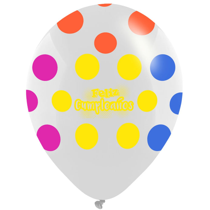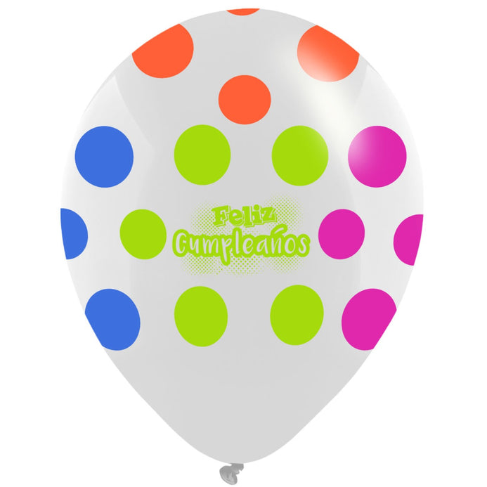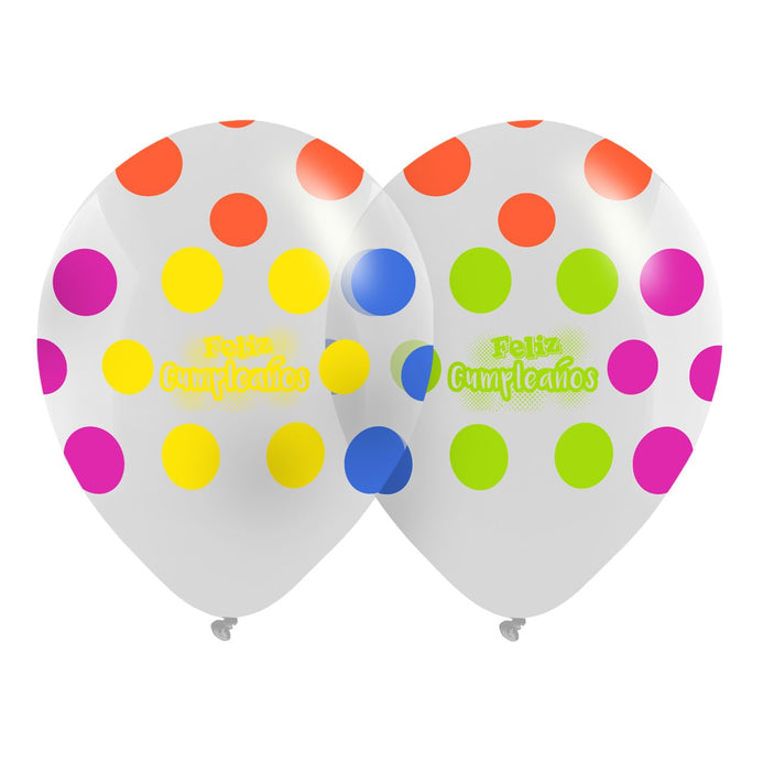 Globos Látex Biodegradables Cristal 360° Feliz Cumpleaños Tinta Neón