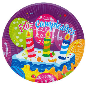 Plato Cartón Redondo Feliz Cumpleaños 9" x12