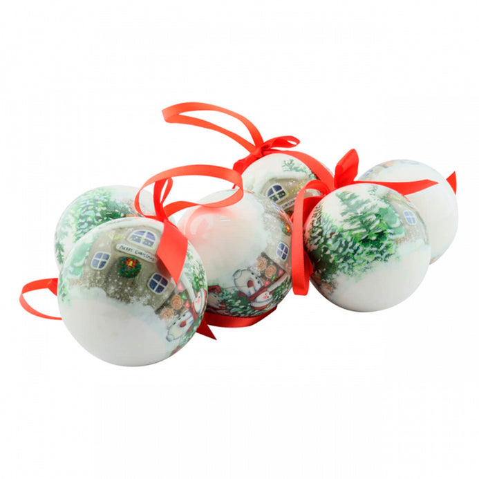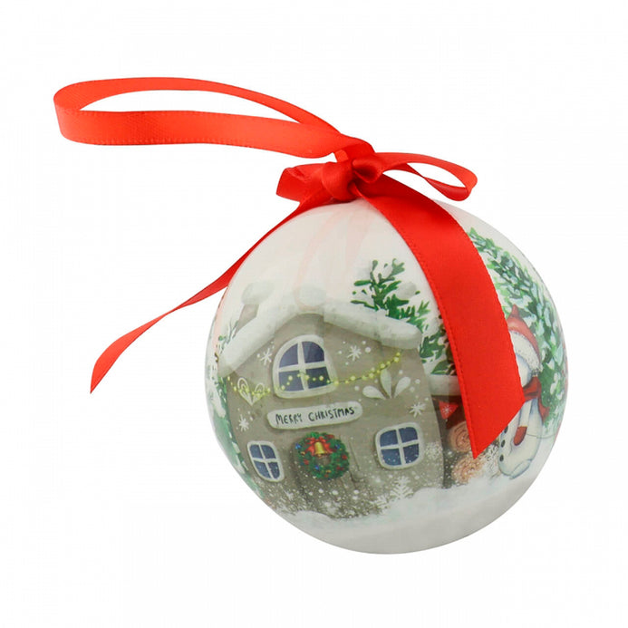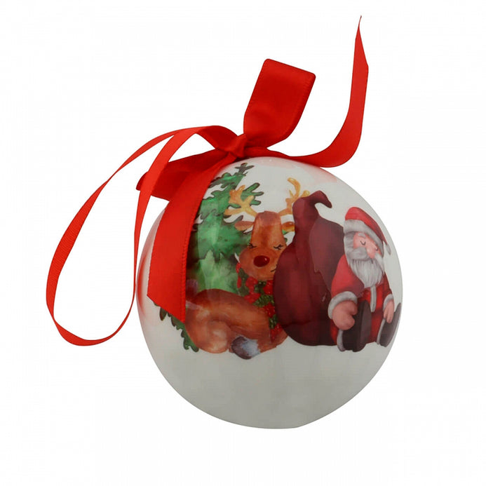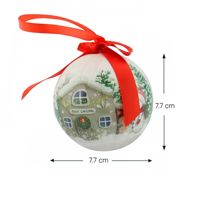 La bola tiene una colorida imagen de Navidad impresa en la parte delantera, con un sentimiento festivo en la parte posterior