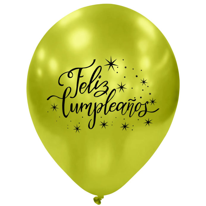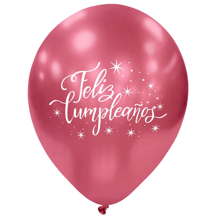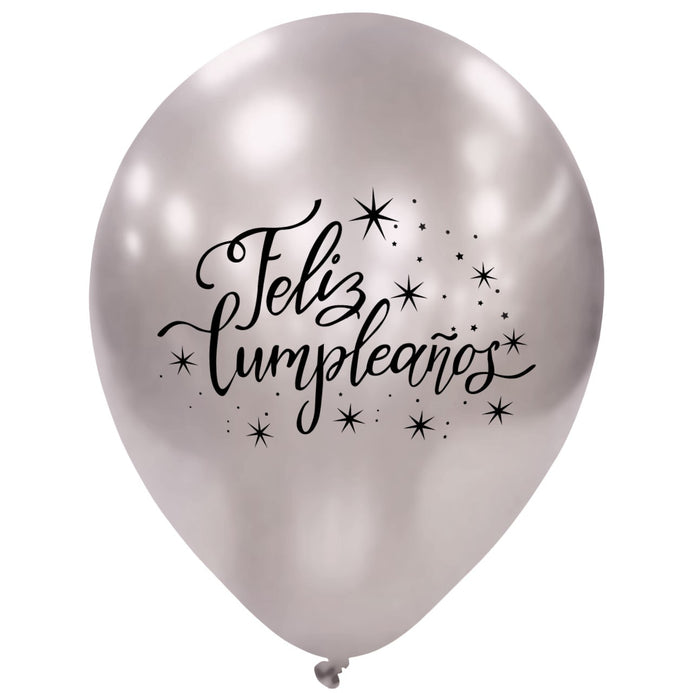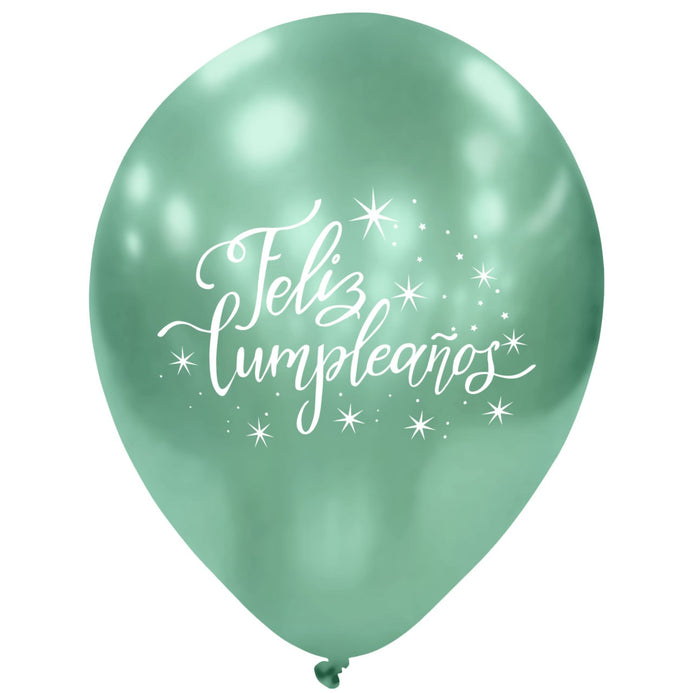 Globos Látex Biodegradables Impresos Espejo Feliz Cumpleaños Surtidos
