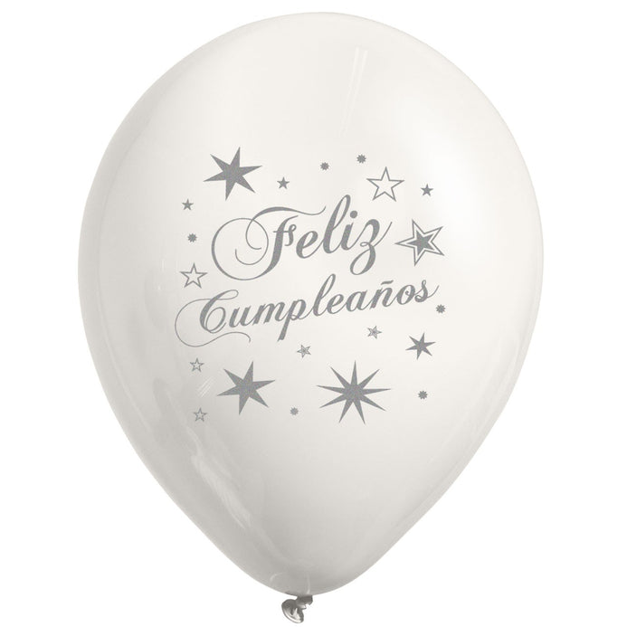 Globos Látex Biodegradables Corrientes Feliz Cumpleaños Tinta Dorada y Plata