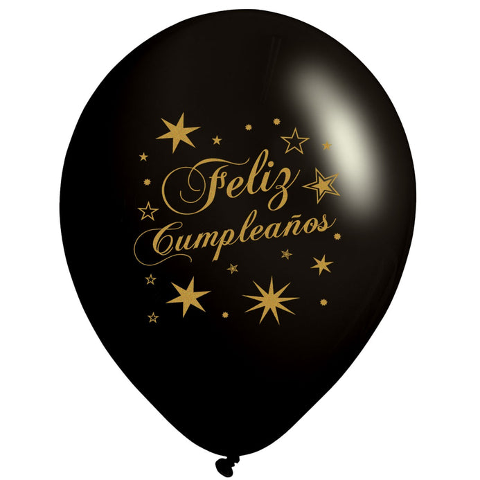 Globos Látex Biodegradables Corrientes Feliz Cumpleaños Tinta Dorada y Plata