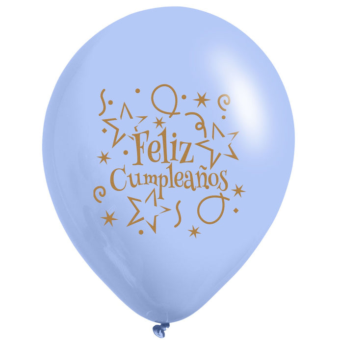 Globos Látex Biodegradables Pastel Surtidos Impresos - Feliz Cumpleaños Estrellas