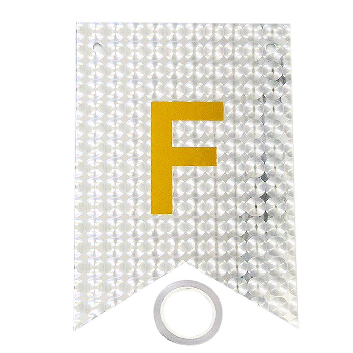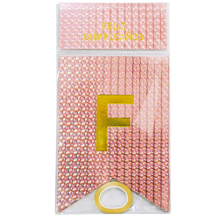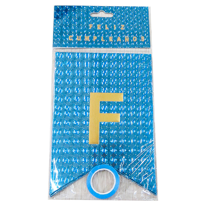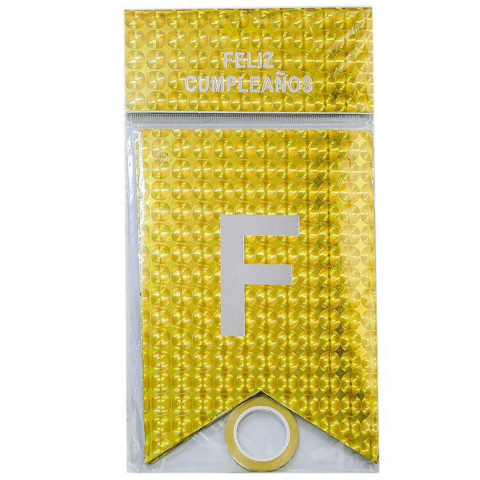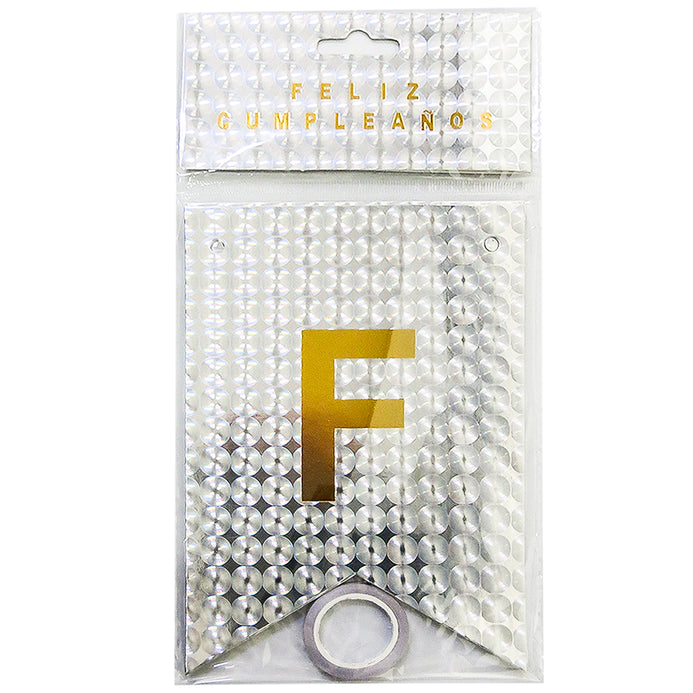 Festón Feliz Cumpleaños Holograma Cuadros Plata