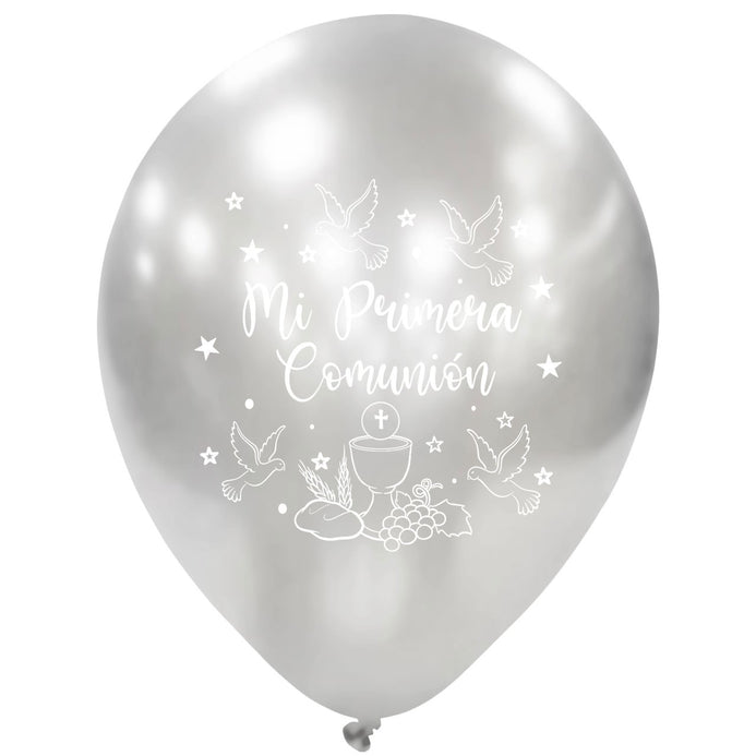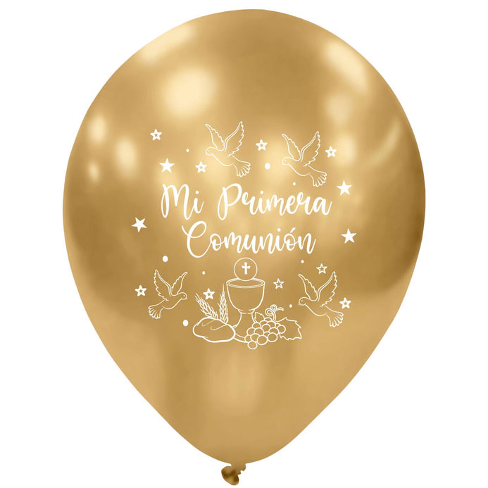 Globos Látex Biodegradables Espejo Mi Primera Comunión Dorado y Plata