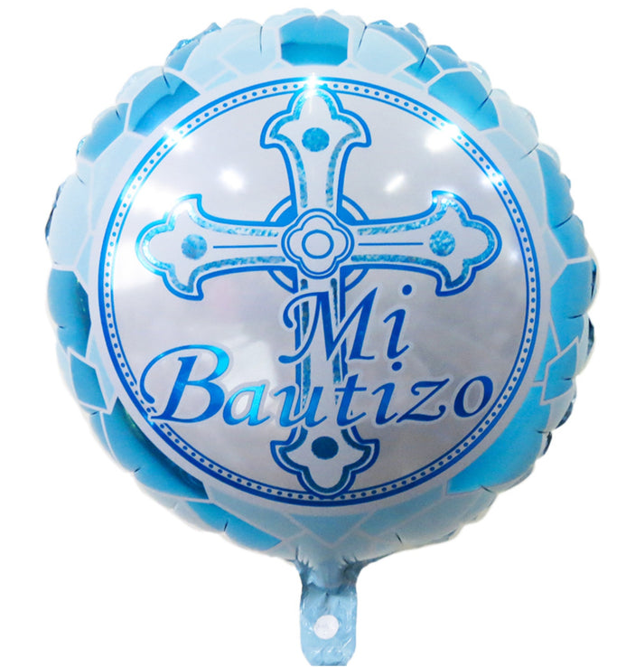 Globos Metalizados Mi Bautizo Cruz 18" Azul Círculo