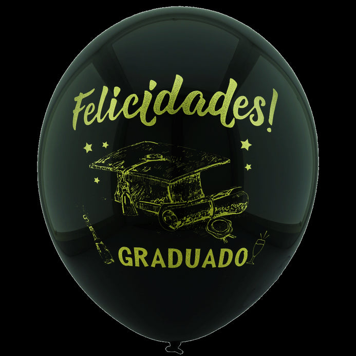 Globos Látex Biodegradables Satinado Felicidades Graduado Dorado y Negro