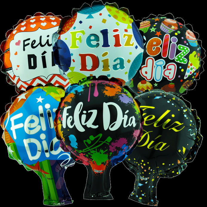 Globo Metalizado Feliz Día Redondo 6" Paquete x 12
