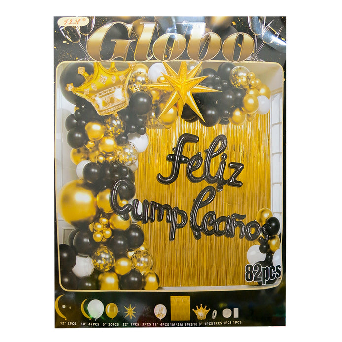 Kit Bouquet Feliz Cumpleaños Negro Dorado