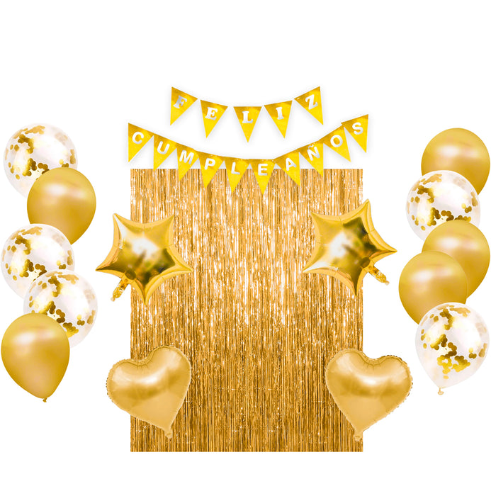 Kit Bouquet Feliz Cumpleaños Dorado-Plata-Oro Rosa