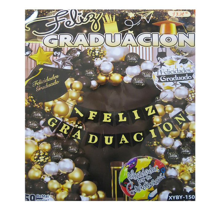 - 1 Globo Metalizado Felicidades Graduado 68x69 cm