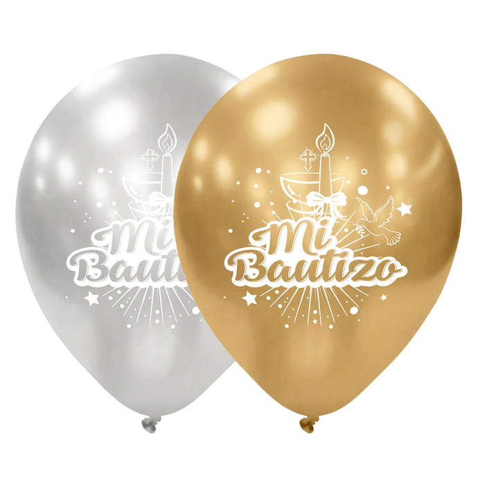 Globos Látex Biodegradables Espejo Mi Bautizo Dorado y Plata