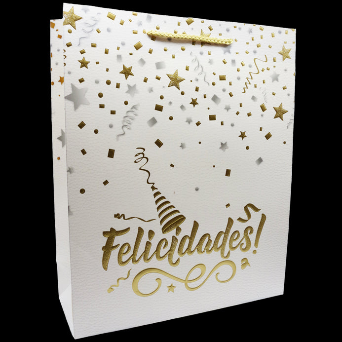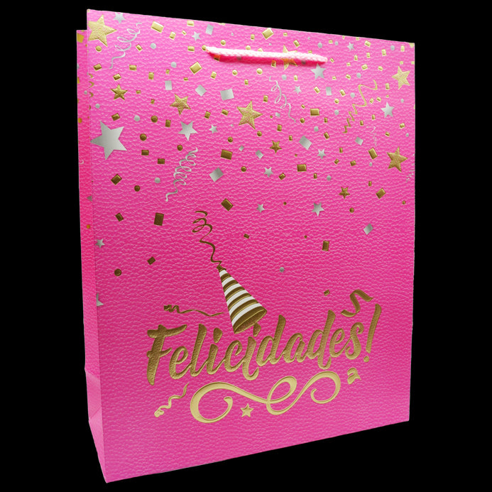 Nuestras bolsas de regalo están hechas de un papel resistente y están forradas con una lámina de polipropileno. Esto hace que la bolsa de regalo sea más duradera, resistente a la humedad y al desgarro. Cada bolsa está provista de un cordón resistente.