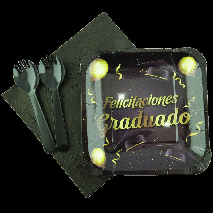 Kit (Platos - Servilletas - Cubiertos) Grado Negro