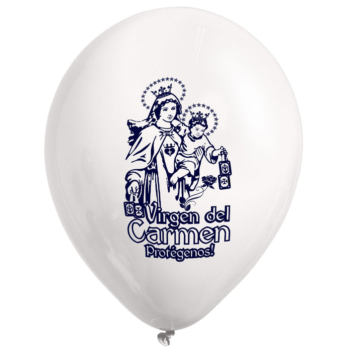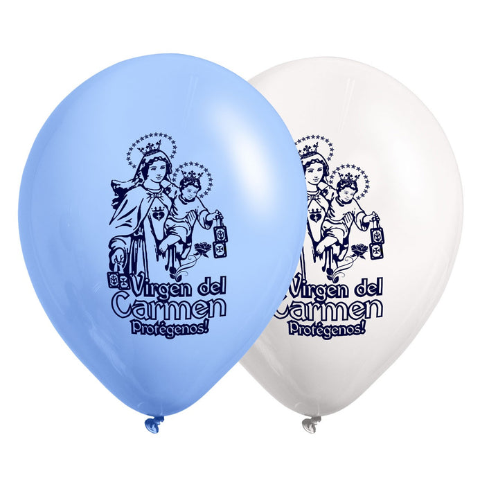 Globos Látex Biodegradables Virgen del Carmen Azul y Blanco