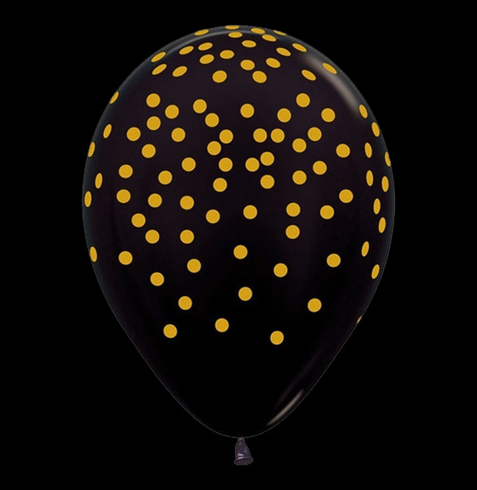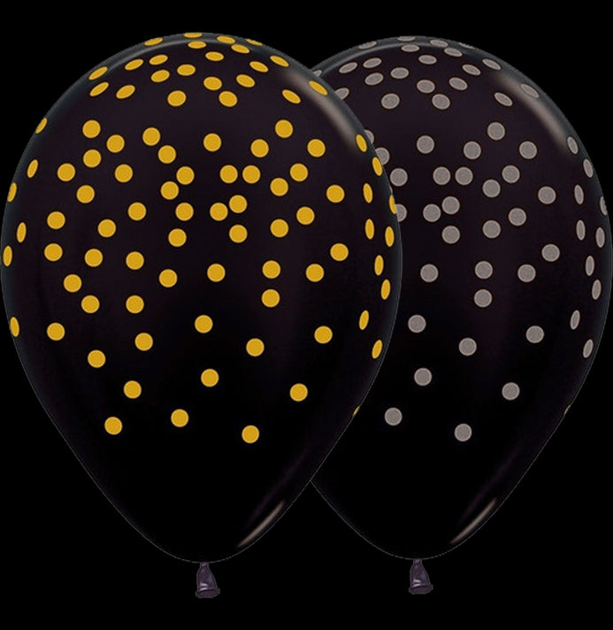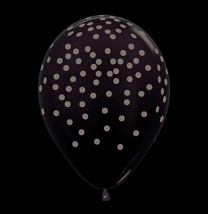 Globos Látex Biodegradables Corrientes 360° Puntos Negra Tinta Dorada y Plata