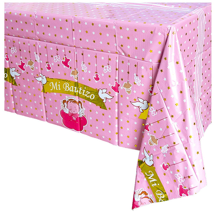 Mantel Bautizo 183x137 Rosado-Azul