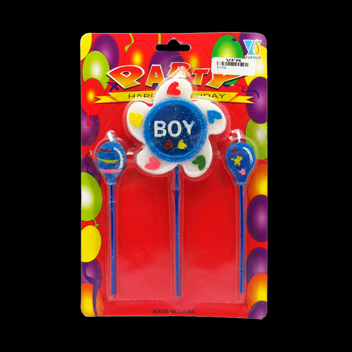 Vela Forma Flor Azul Boy x3