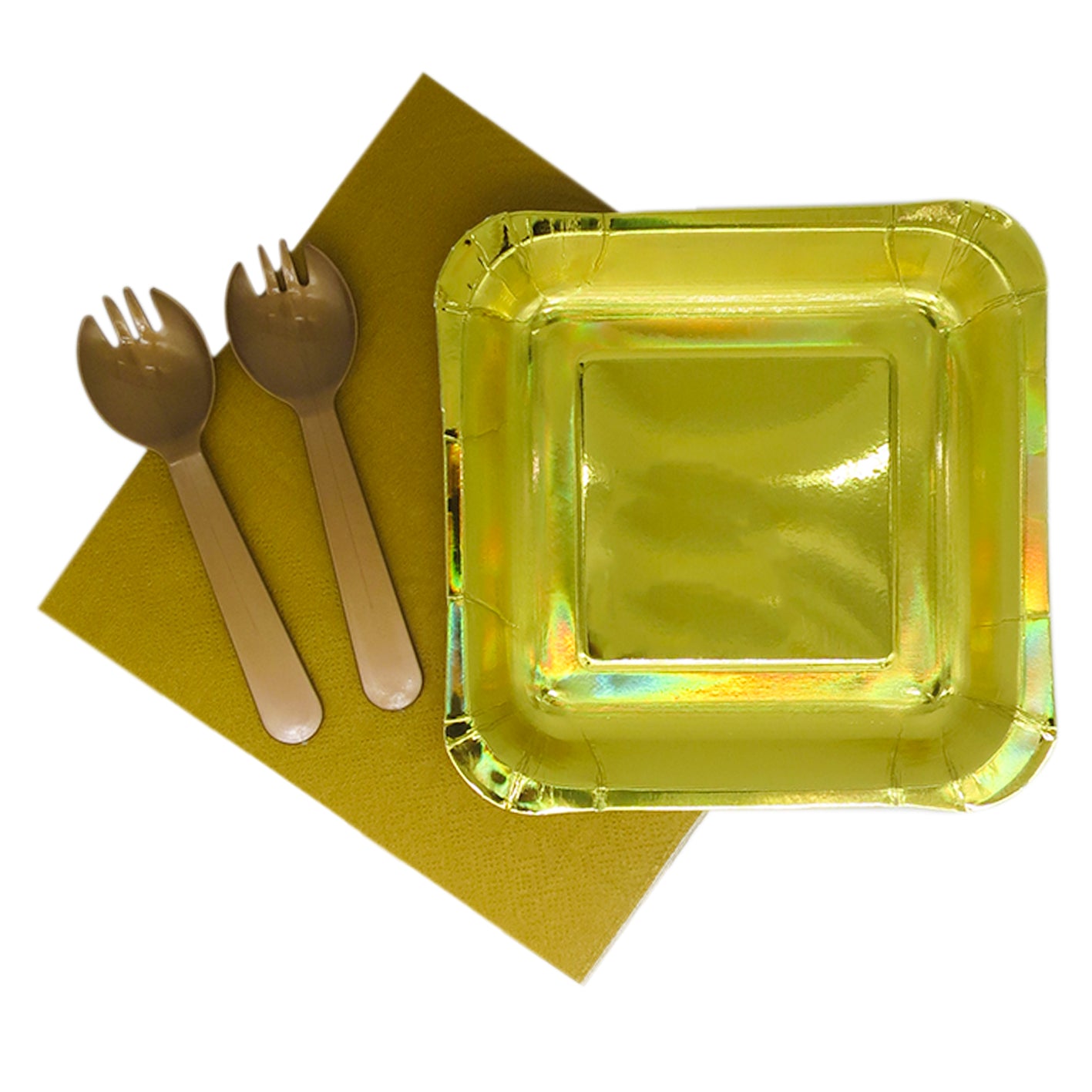Kit de Platos con Servilleta y Cuchara Tenedor