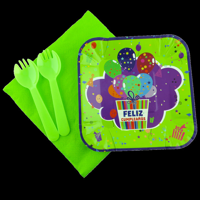 Kit (Cubiertos-Platos-Servilletas) Feliz Cumpleaños