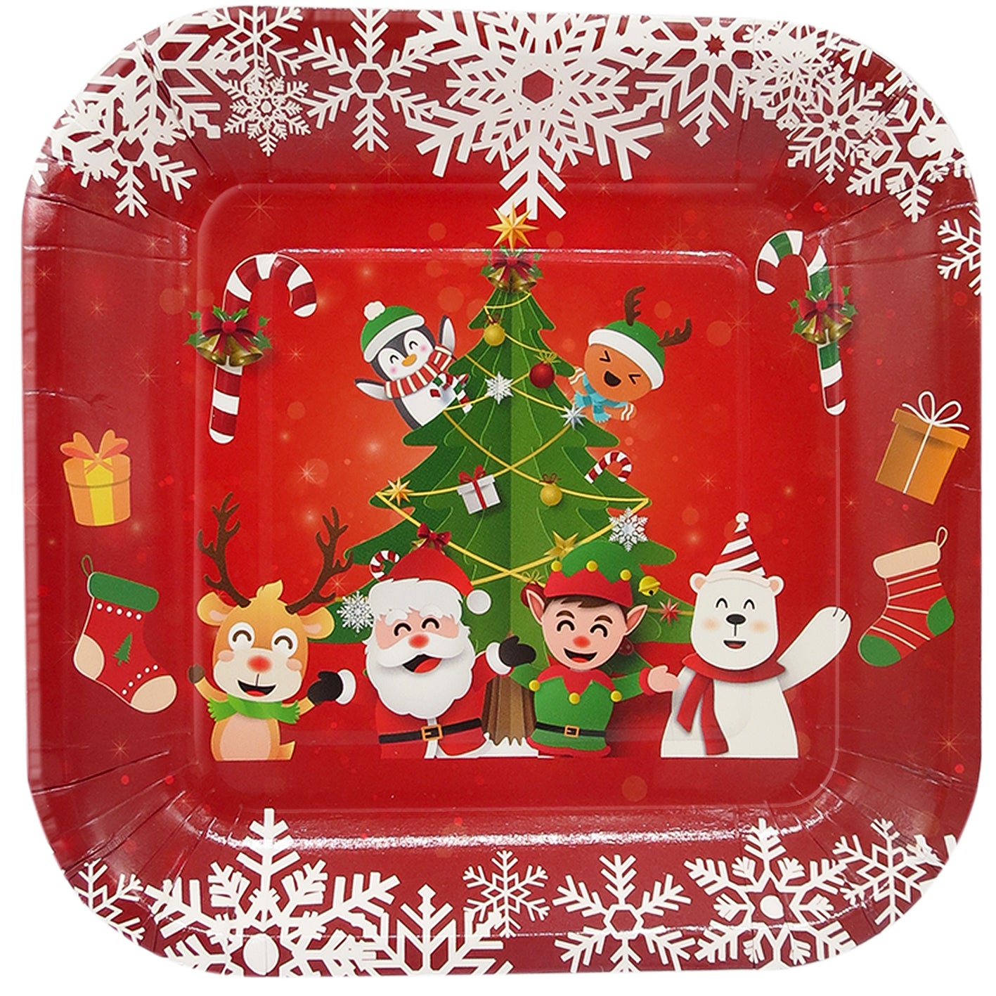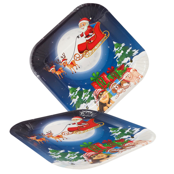 Plato Cartón Cuadrado 6" Navidad x12