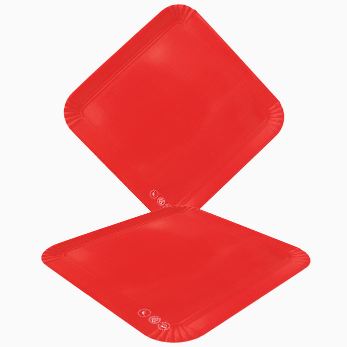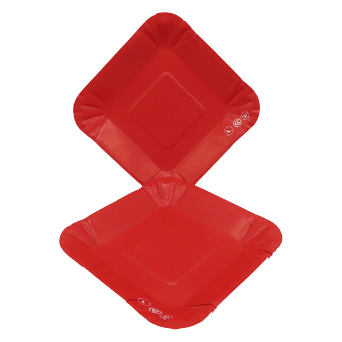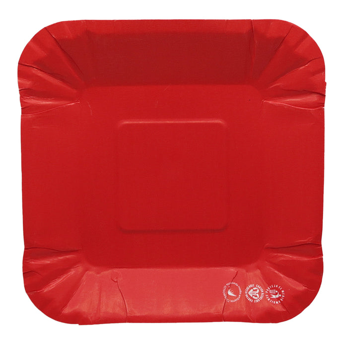 Plato Cartón Cuadrado 6" 8" 9" Rojo x12