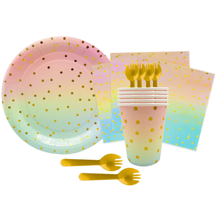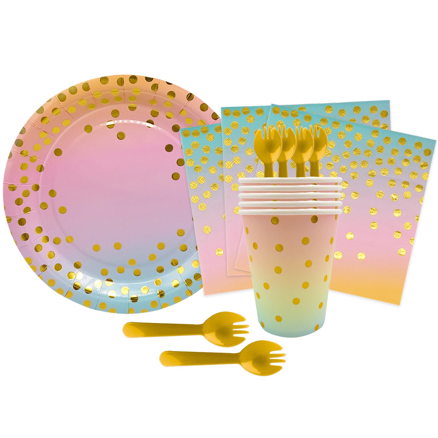 Kit (Cubiertos-Platos-Servilletas-Vasos) Puntos Dorados Degrade