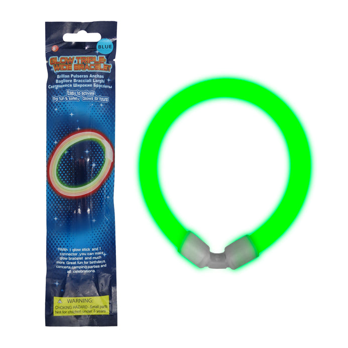 Manillas Luminosas Cada Glow Triple Wide Bracelet puede brillar 6-8 horas en la oscuridad. Utiliza la luz como accesorio de festival para iluminar tu fiesta. La duración de la luz depende de la temperatura ambiente. Cuanto menor sea la temperatura, más largo será el tiempo de iluminación. Puedes guardar las barras de brillo a una temperatura ambiente más fría para lograr la vida útil más larga.