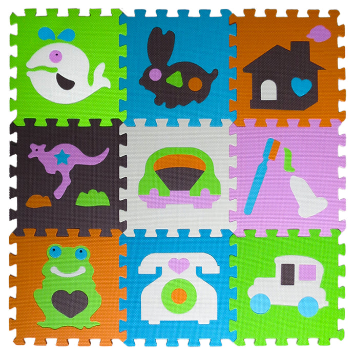 Para jugar: puzle de goma EVA con estampados. Alfombra ideal para la habitación infantil.
